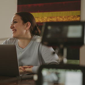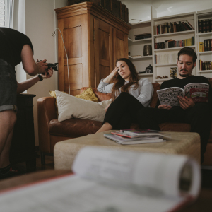 Hier sehen Sie Elisa Wehrle in der Hauptrolle mit Patrick Sass als Spielpartner beim Dreh in Rüsselsheim am Main.